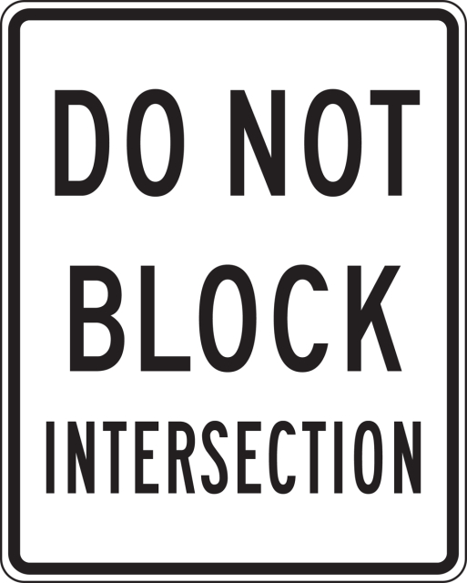- The DO NOT BLOCK INTERSECTION (R10-7) sign is used for avoidance of traffic obstructions