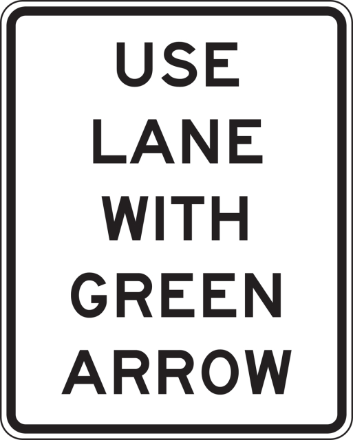 - Traffic Signal signs may be installed at certain locations to clarify signal control, such as the USE LANE(S) WITH GREEN ARROW (R10-8) sign, for obedience to Lane Control signals