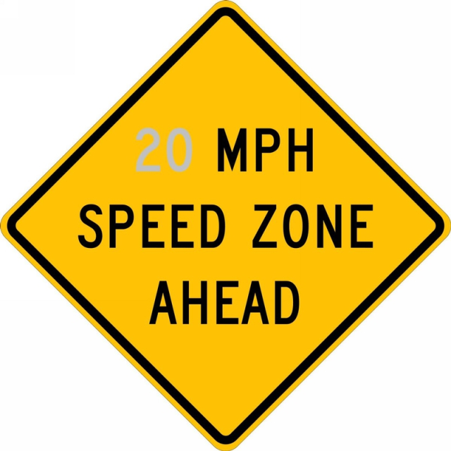 • The (W3-5a) sign can be used to restrict vehicle speed in designated zone areas of the roadway